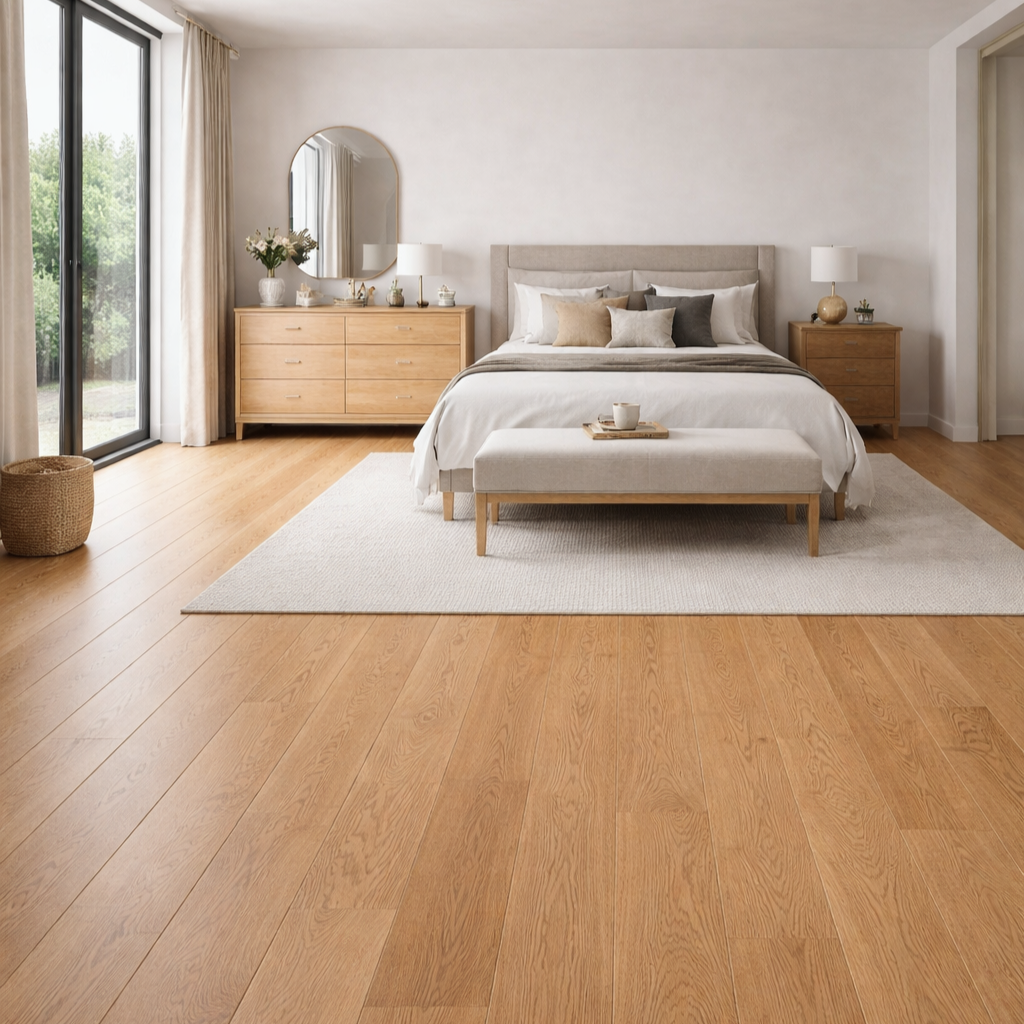 Die gebürstete und ruhig sortierte Landhausdiele Eiche Alva sorgt für ein zeitloses Erscheinungsbild. Die Landhausdielen überzeugen durch ihre Robustheit und Langlebigkeit und sind auch für strapazierte Räume geeignet.