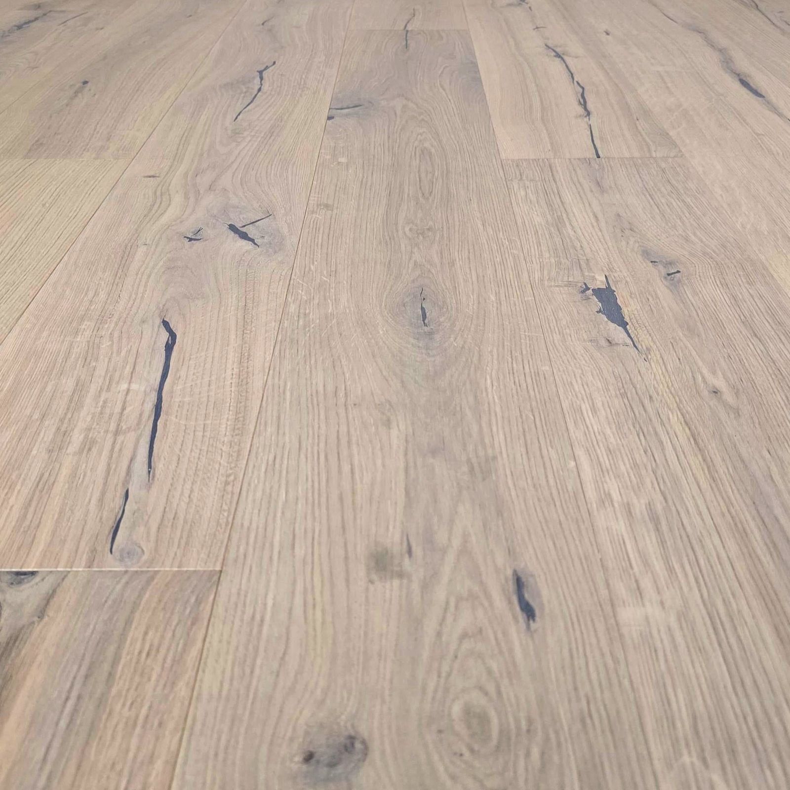 Landhausdiele Eiche Arnett | geräuchert, handgehobelt, weiß geölt, Rustik | 1900x190x15 mm